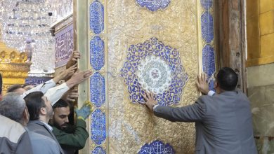 ملاكات قسم صناعة الشبابيك تباشر بتثبيت باب قبلة مرقد العباس عليه السلام