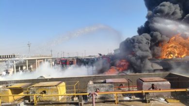 الدفاع المدني بالبصرة يخمد حريقاً كبيراً في صهريج وقود بمحطة سفوان ويمنع كارثة