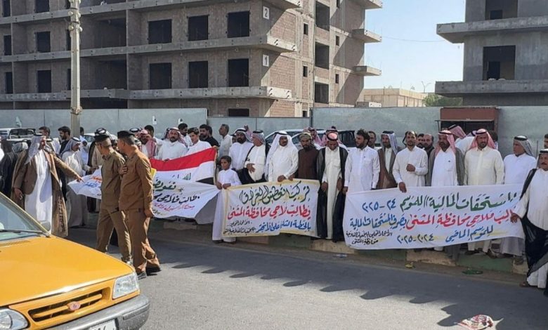 تظاهر المزارعون في محافظة المثنى، اليوم الخميس، احتجاجاً على حكومة محمد شياع السوداني بسبب تأخر صرف مستحقاتهم المالية الخاصة بتسويق محصول الحنطة.