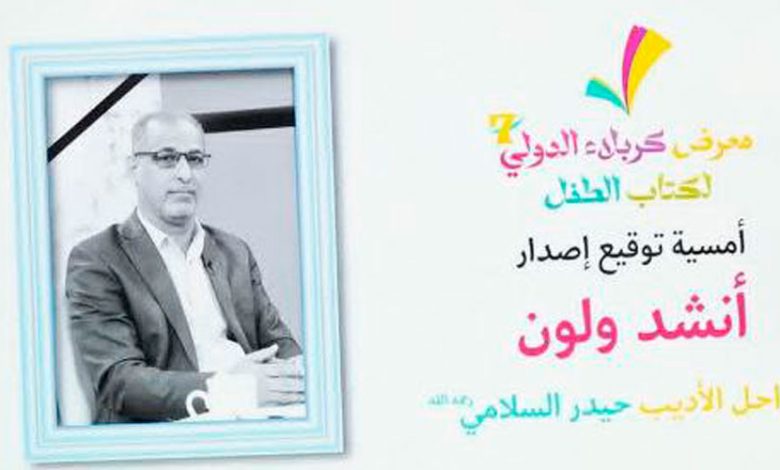 نظمت ادارة معرض كربلاء الدولي لكتاب الطفل بدورته السابعة ،الذي تقيمه العتبة الحسينية المقدسة في منطقة بين الحرمين الشريفين، حفل توقيع اخر اصدار للاديب الراحل حيدر السلامي الذي يختص بأدب الطفل حيث جاء بعنوان ( أنشد ولون )”.