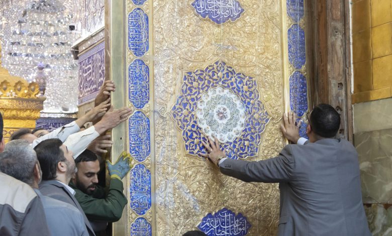 باشرت ملاكات قسم صناعة شبابيك الأضرحة الشريفة وأبوابها بتثبيت باب قبلة حرم أبي الفضل العباس (عليه السلام) بعد إكمال أعمال صيانته وتذهيبه.