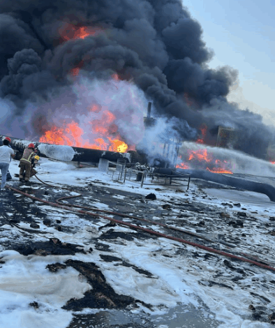 وأضاف ان فرق الدفاع المدني البصرة مستنفرة جهودها في الاخماد بإشراف مدير دفاع المحافظة واسناد فرق اطفاء النفط.