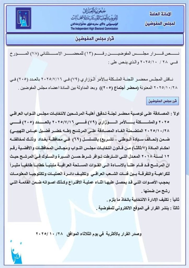 أخبارسياسة المفوضية تستبعد طه اللهيبي من الانتخابات بسبب إدانته بـ “الإساءة للقوات الأمنية” قررت مفوضية الانتخابات، اليوم الأربعاء، استبعاد المرشح طه اللهيبي من السباق الانتخابي بسبب إساءته للقوات الأمنية. فيسبوك X ماسنجر ماسنجر واتساب تيلقرام