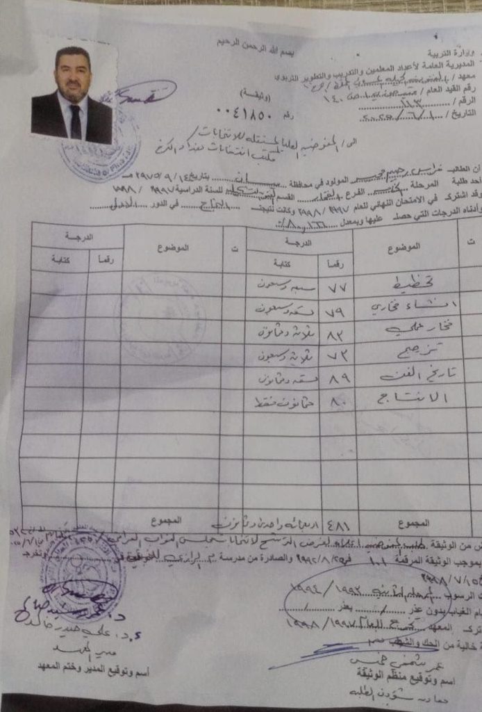 وأوضح الحسيني أن المعلومات التي وردت إليه تشير إلى أن الوثيقة مزورة بالكامل وغير صادرة عن أية جهة أكاديمية رسمية، وأن العملية تمت بوساطة مالية مباشرة بين المرشح ومدير المعهد، مشدداً على أن هذه الواقعة تمثل انتهاكاً صارخاً للنزاهة العامة ولحق الشعب في انتخابات نزيهة.