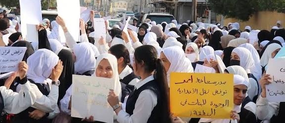 وذكرت عبد الباقي ان ادارة الإعدادية واولياء امور الطالبات اعترضت على نقلها الى اعدادية اخرى لوجود دوام طلاب فيها