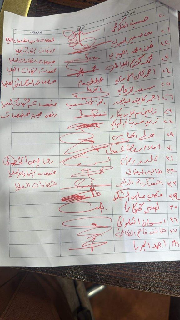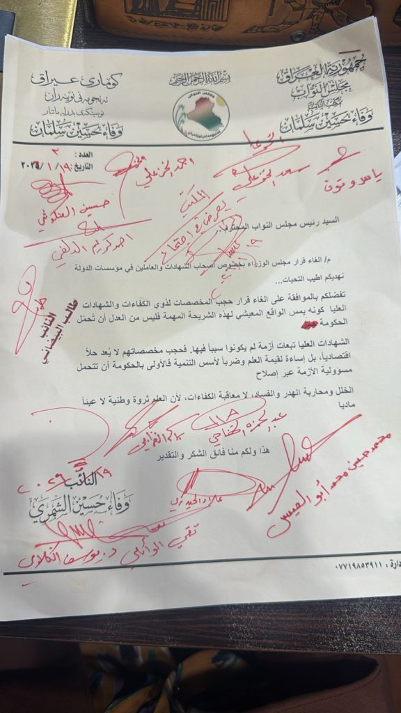 جمع أعضاء مجلس النواب، اليوم الاثنين، تواقيع نيابية لإلغاء قرار مجلس الوزراء الصادر بشأن أصحاب الدراسات العليا والعاملين في مؤسسات الدولة.