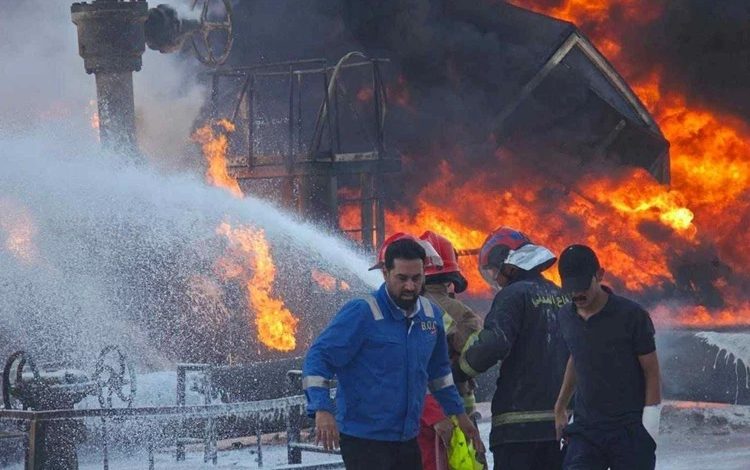 وقال المصدر، ان “حريقا اندلع في أحد خزانات مستودع الفاء النفطي في ساعة متأخرة من مساء يوم أمس، نتيجة صاعقة كهربائية، ما أدى إلى أضرار مادية”، مبيناً أن “ثلاث فرق من الدفاع المدني تمكنت من السيطرة على الحريق خلال فترة وجيزة”.