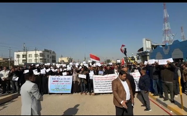 تظاهر منتسبو شركة نفط ميسان أمام مقر الشركة وسط مدينة العمارة احتجاجا على قطع مخصصات مالية ضمن مرتباتهم الشهرية، مطالبين بالعدول عن تلك القرارات التي تطال رواتب الموظفين.
