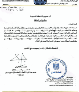 واظهرت وثيقة اطلعت عليها فنار نيوز ، توجيها لمديريات كمارك المنطقة الجنوبية، بتمديد فترة السماح بتخليص البضائع للشركات المتأخرة، وجعل فترة السماح 60 يوما بدلا من 30 يوما.