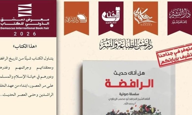 وأوضح المصدر ، أن “الكتاب يتضمن تلخيصًا لصوتيات الزعيم السابق لتنظيم القاعدة في العراق، المجرم أبو مصعب الزرقاوي، وكان مدرجًا ضمن إصدارات دار نقش للطباعة والنشر، وهي دار نشر سورية مقرها إدلب”.