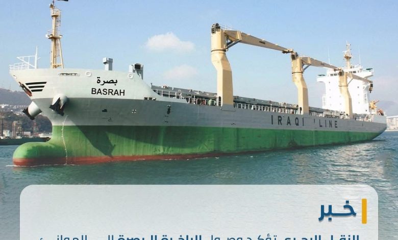 اكدت وزارة النقل الشركة العامة للنقل البحري أن سفينة النقل البحري (البصرة) قد وصلت إلى الموانئ العراقية يوم أمس،بعد إتمام رحلتها البحرية بنجاح.